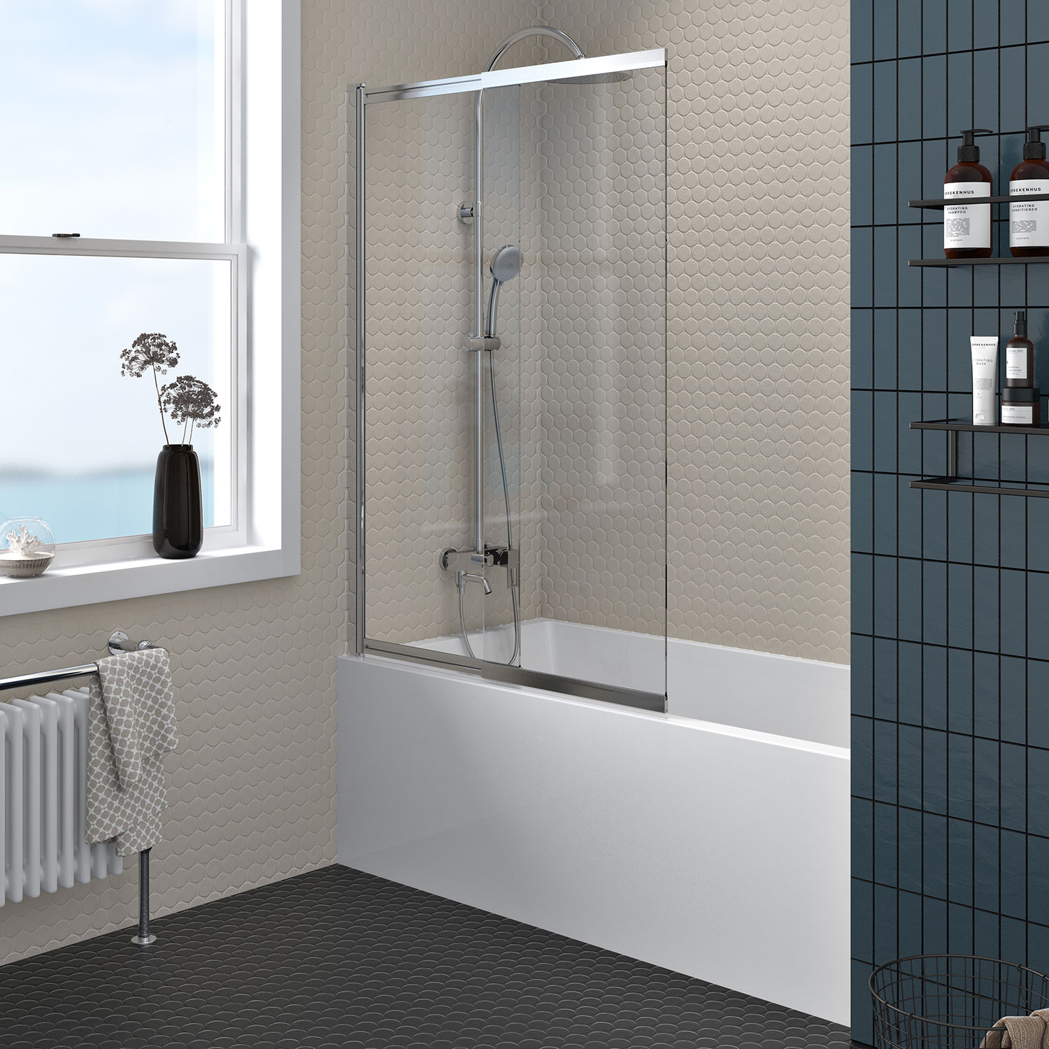 Zitta Bathtub Screen 40", in Alcove, in Matte Black