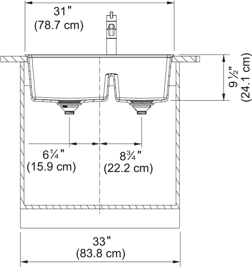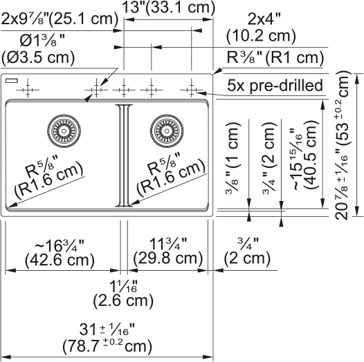 - Number of faucet holes: 5 - pre-scored