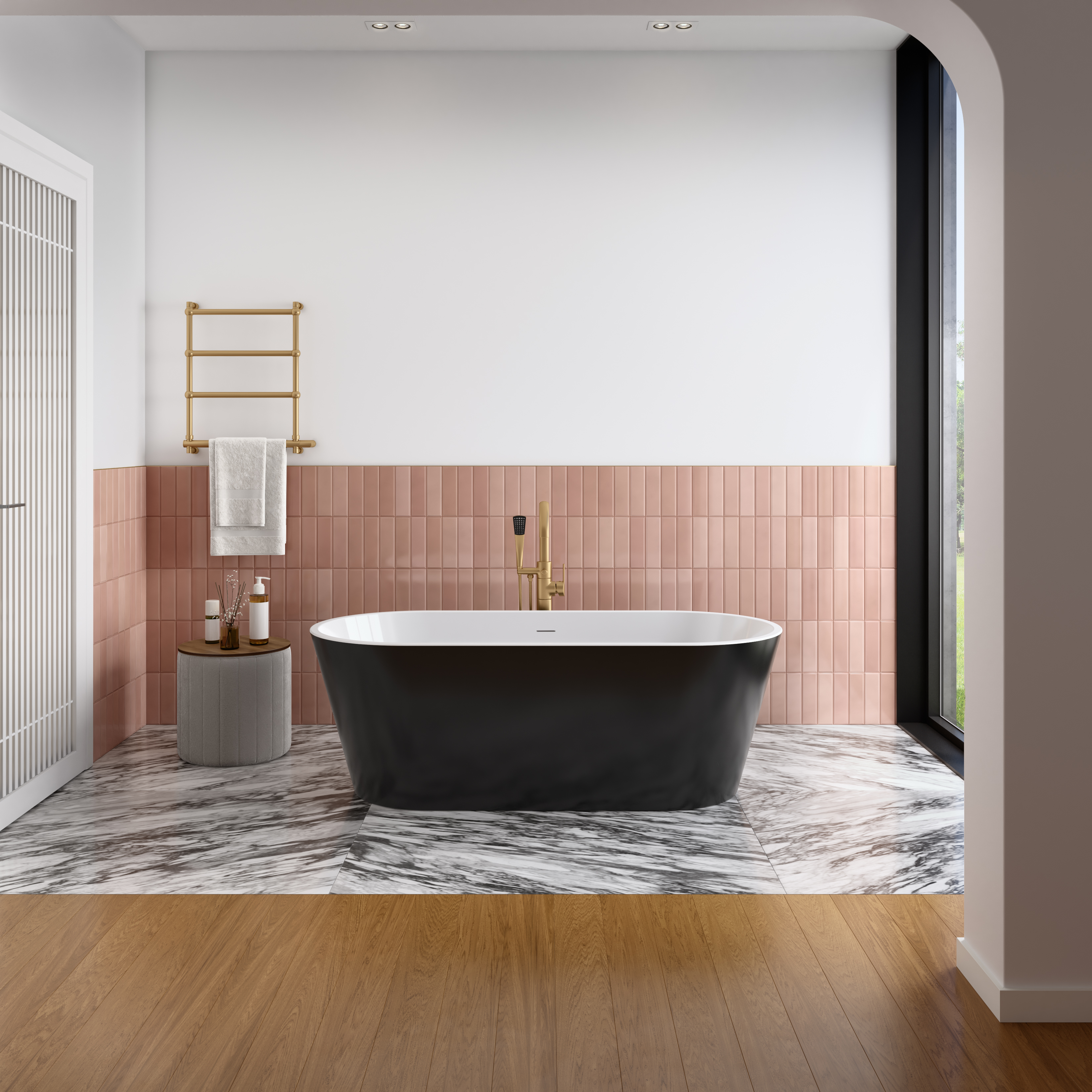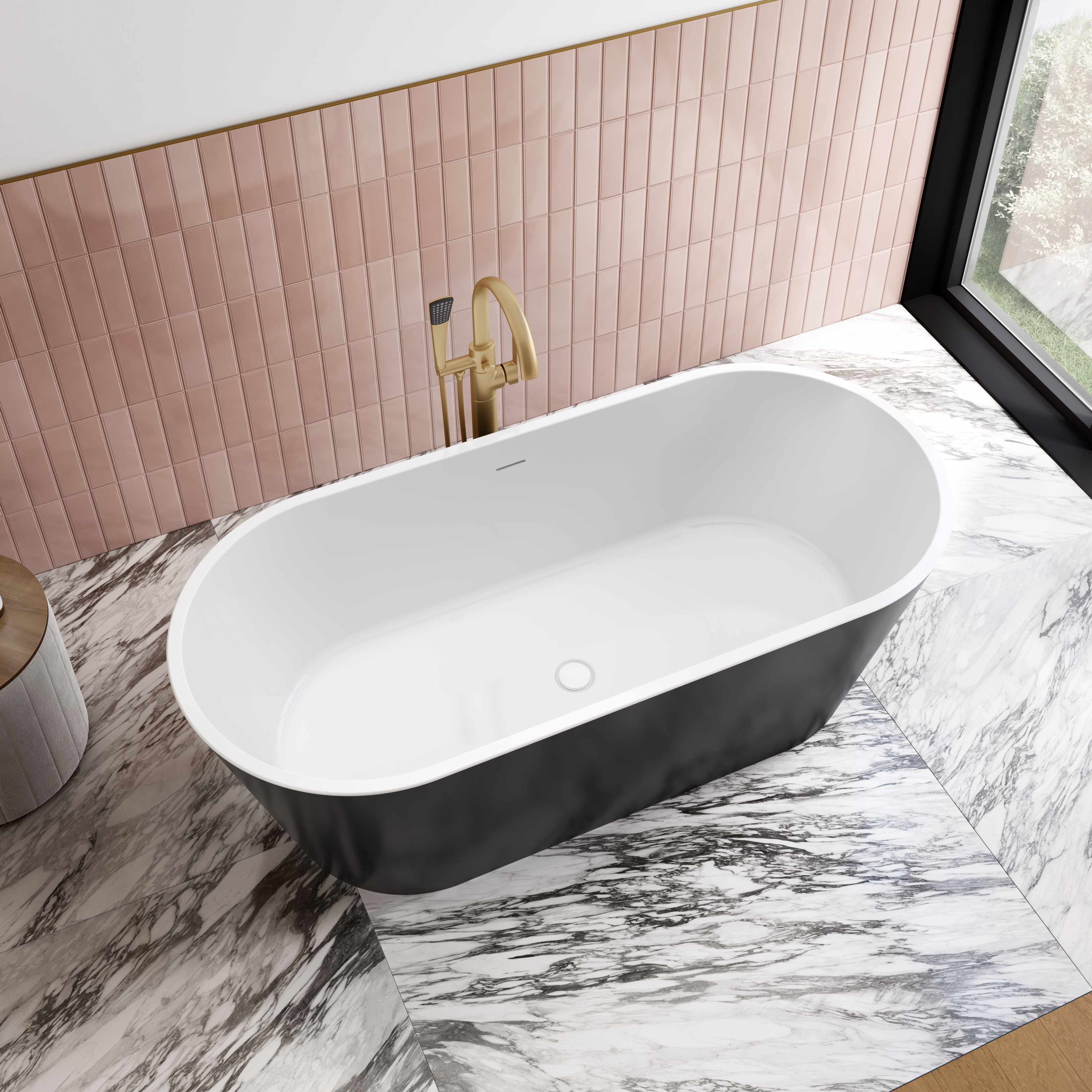 Maax Chorale 67 x 31 Acrylic Freestanding Center Drain Bathtub in White with Black Skirt