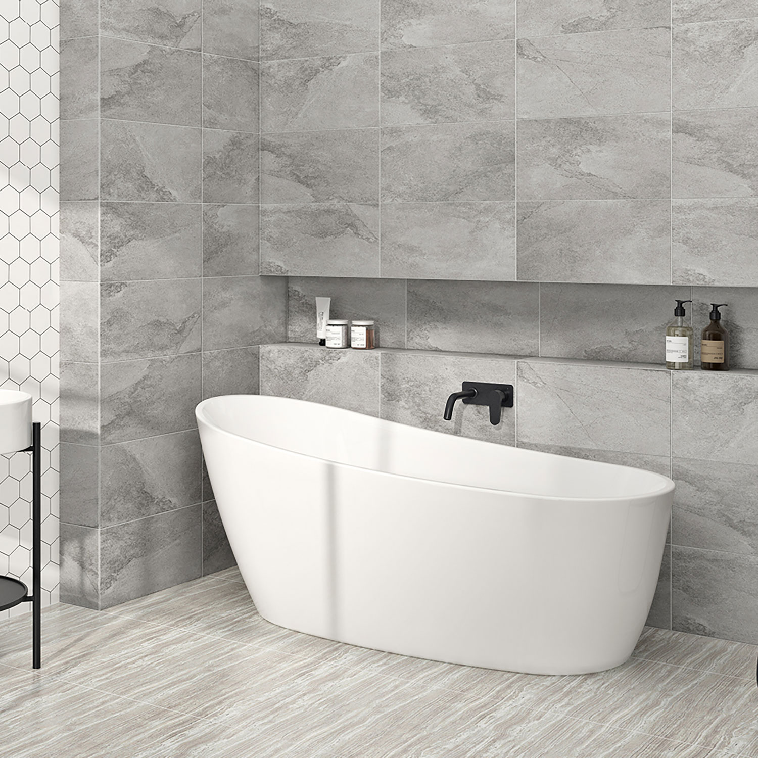 Maax Tori Matte 6732 Acrylic Freestanding Center Drain Bathtub in Matte White